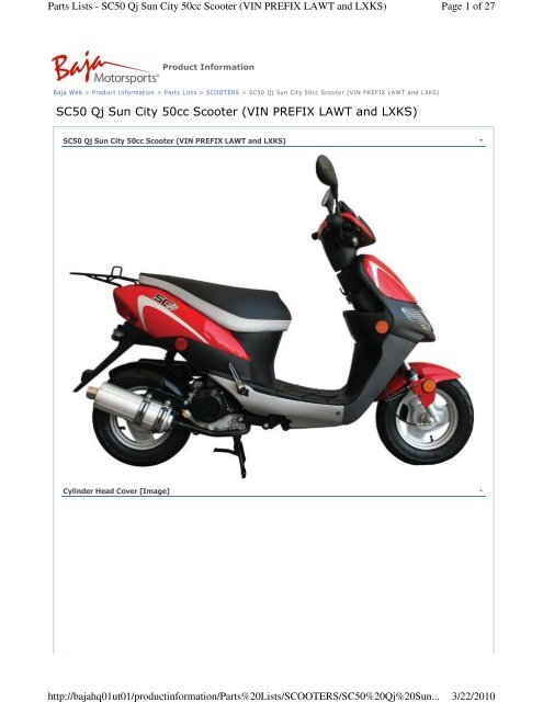 Baja Motor Sports Owner S Manuals. Baja Sc50 Sun City 50cc Tech Talk With Mo SCRAPPYDOGSCOOTERS COM. Baja Suncity SC50 4T VIN LWGT - Components Overview Here you find spare parts tuning parts and accessories for the Baja Suncity SC50 4T VIN LWGT.
